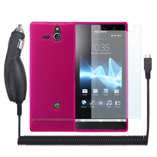 Review PrimaCase - Rose (Pink) - Coque TPU Silicone + Chargeur Allume Cigare + Film de Protection (x3) pour Sony Xperia U. This on-line sellers supply the